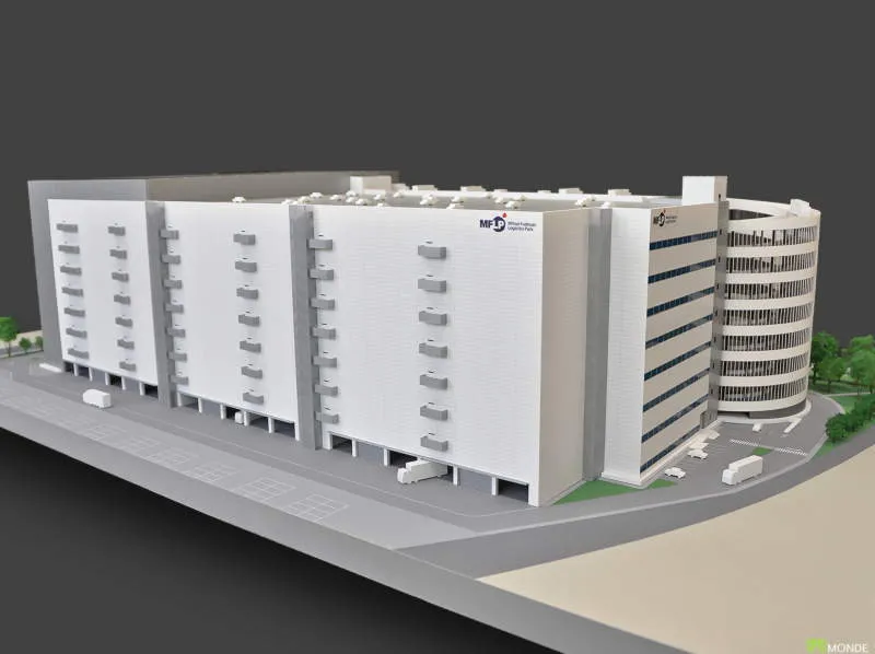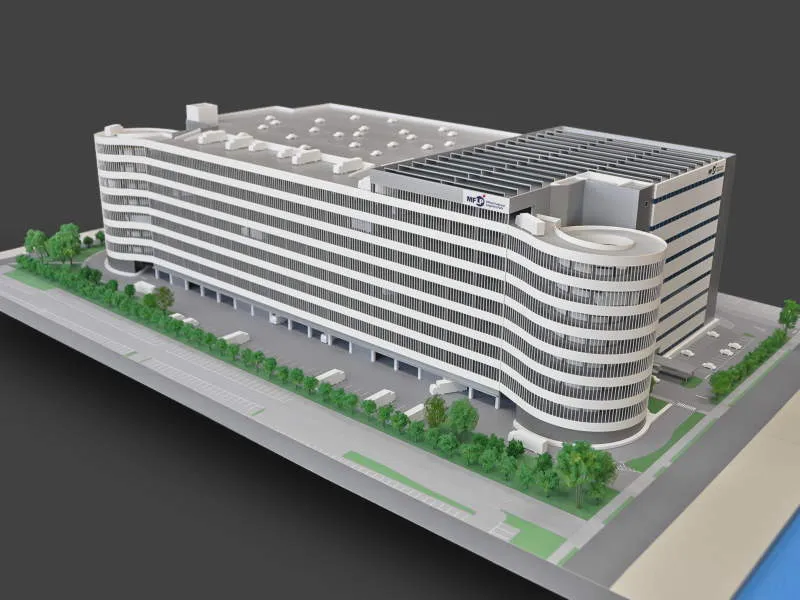 広大な敷地を持つ物流施設の全体模型です。