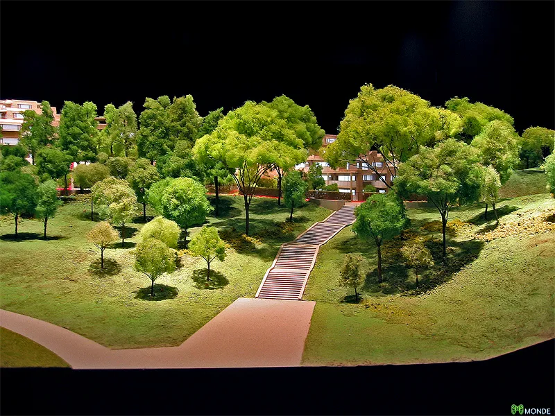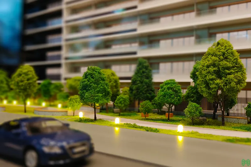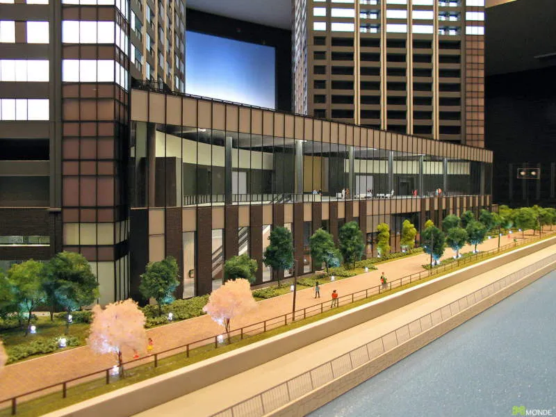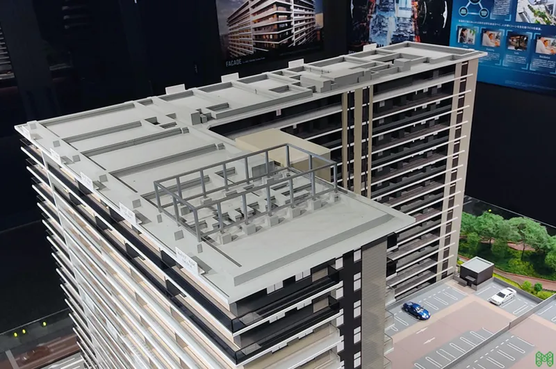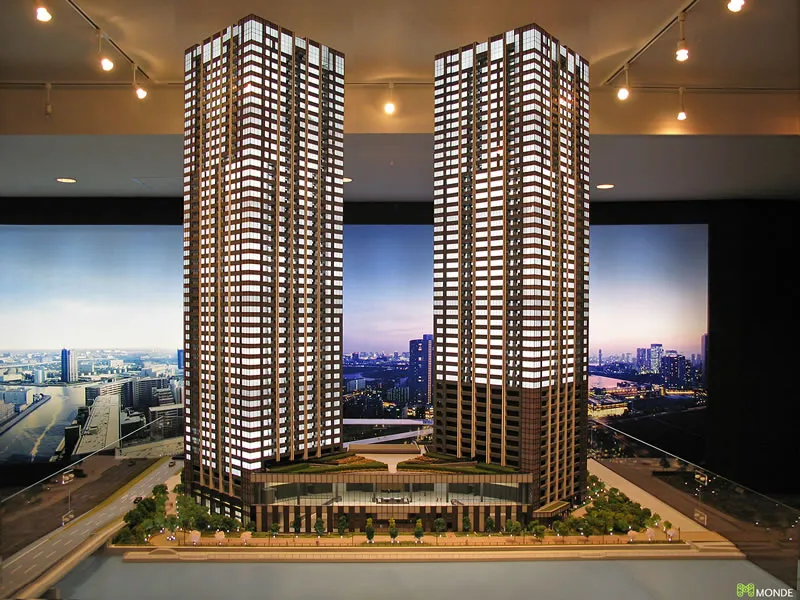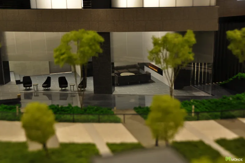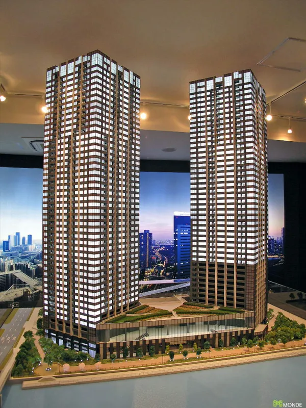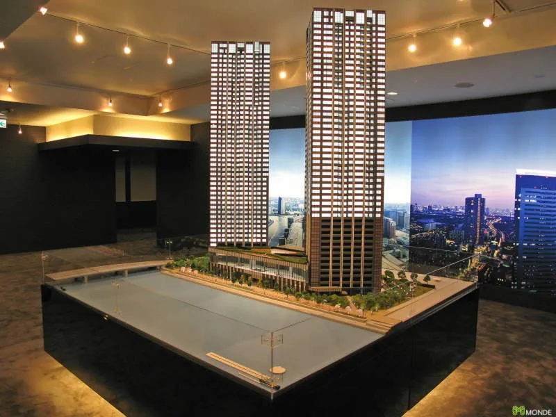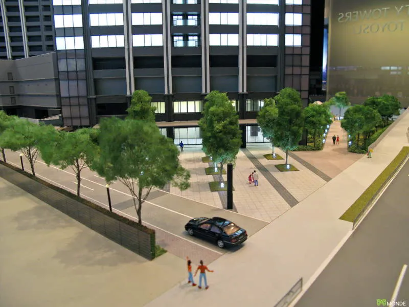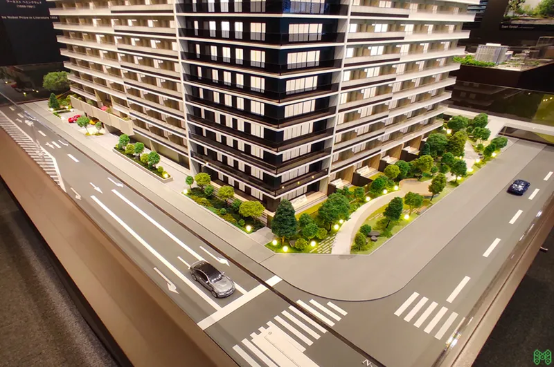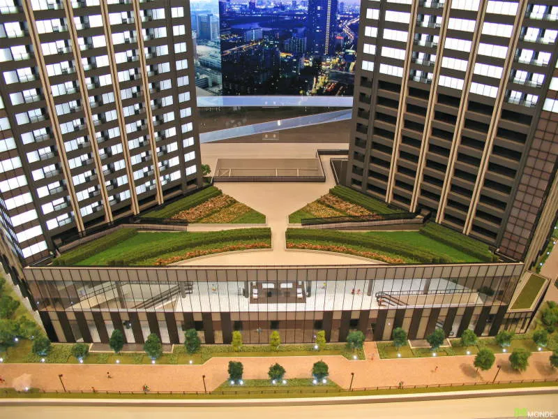 港湾エリアの大規模タワーマンション模型。外構計画も再現。