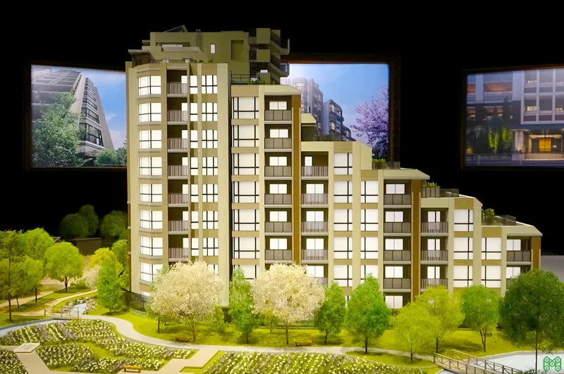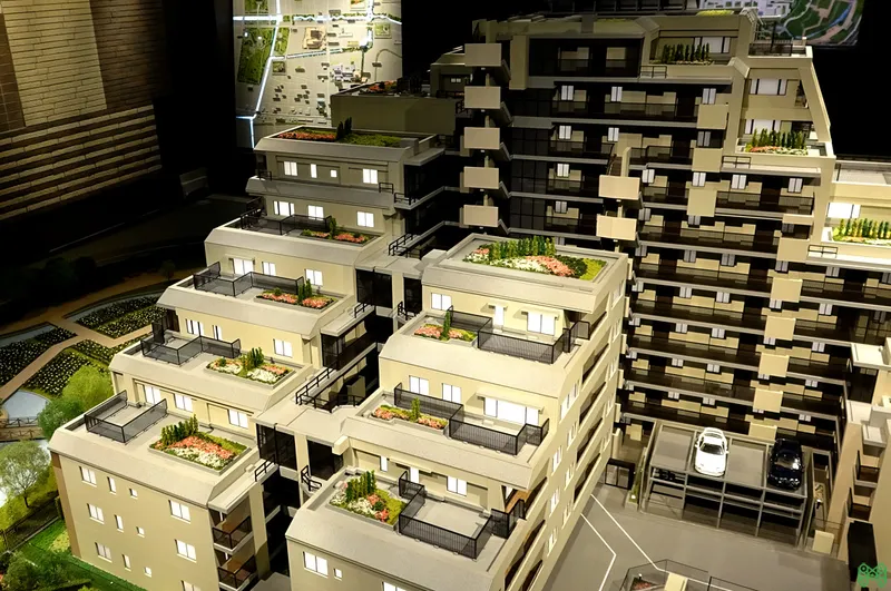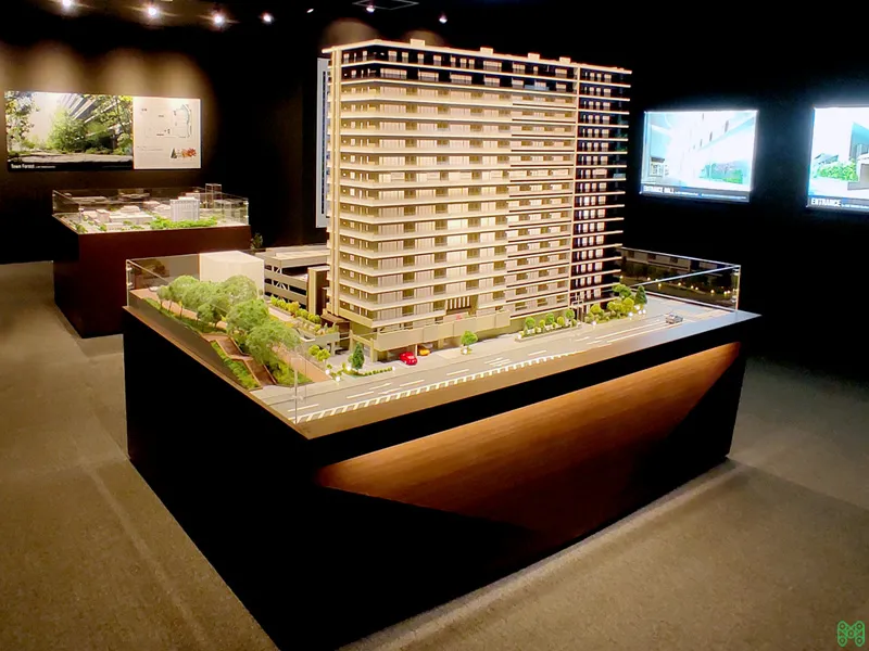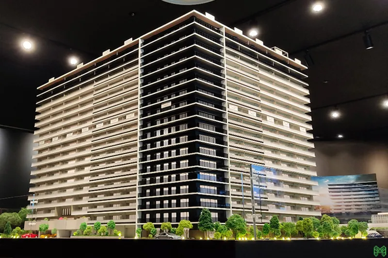大規模修繕計画や販売説明会で活用される精巧なマンション模型。
