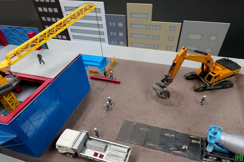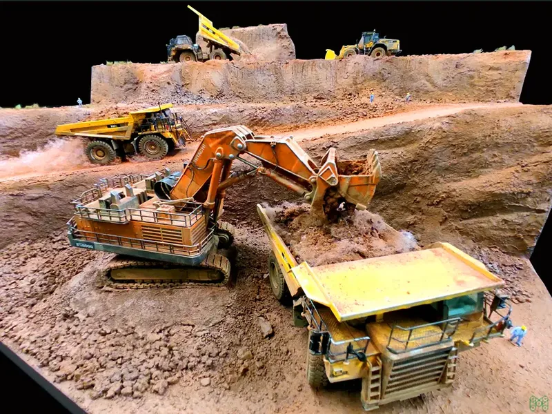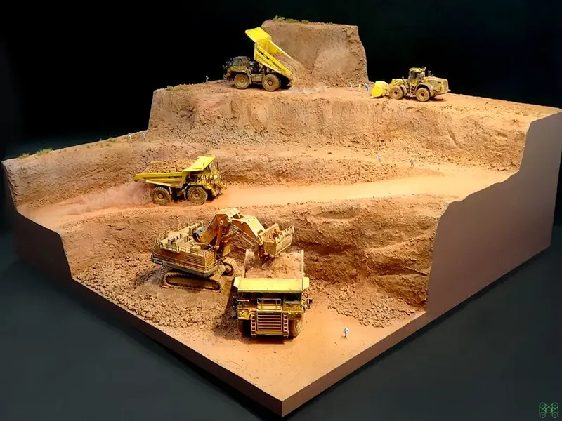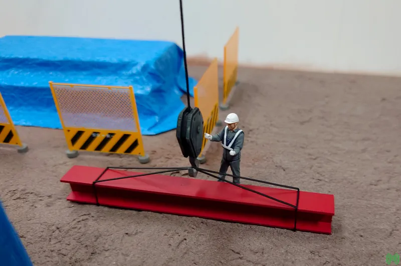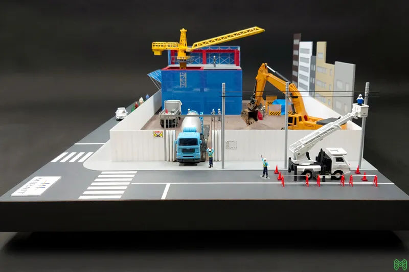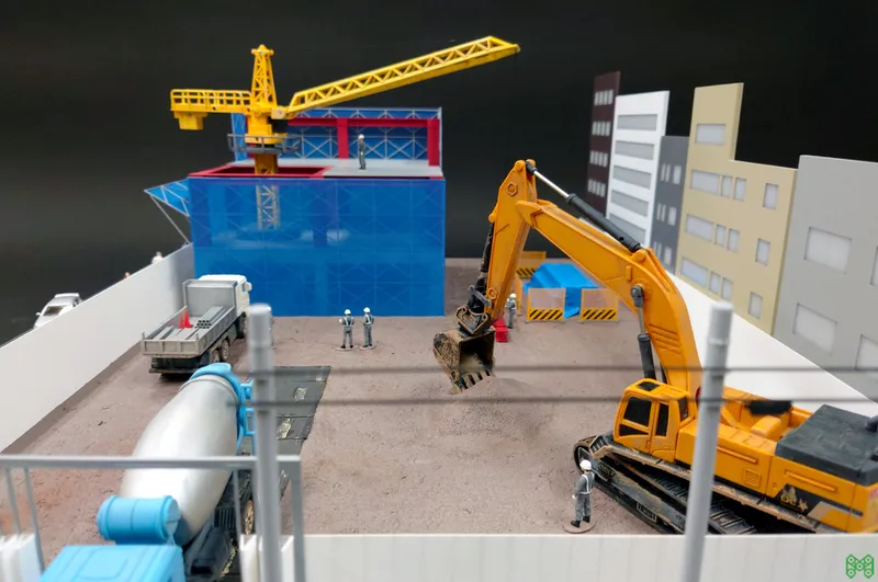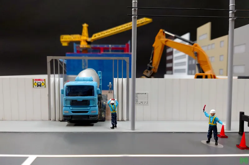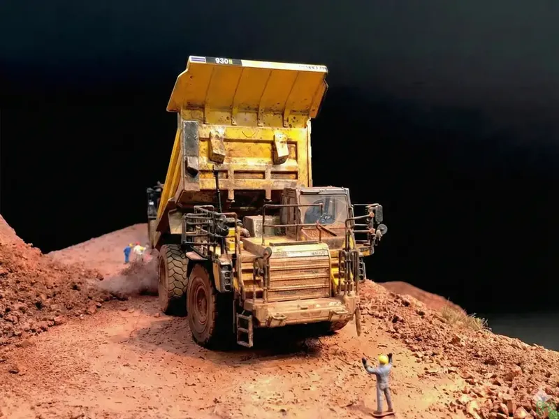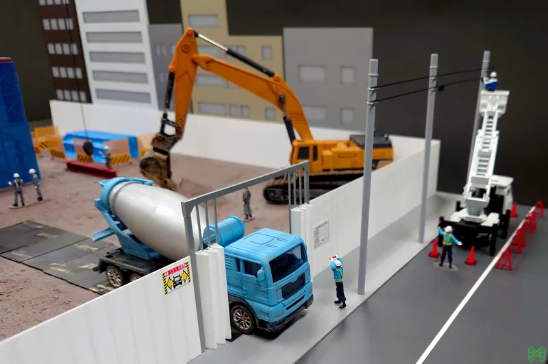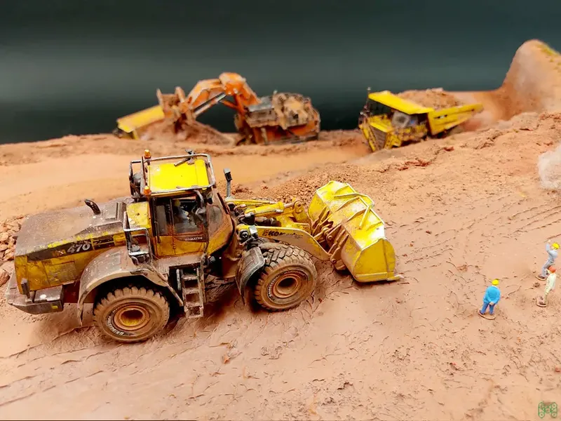 車両には既製品を賢く活用してコストを抑制しつつ、「ウェザリング(汚し塗装)」や「砂煙エフェクト」を追加。 予算を抑えながら、現場の熱気や迫力まで伝わるハイクオリティな作品に仕上げています。