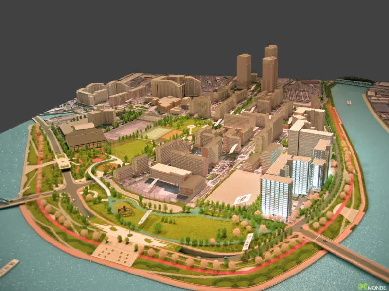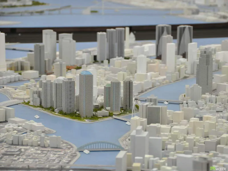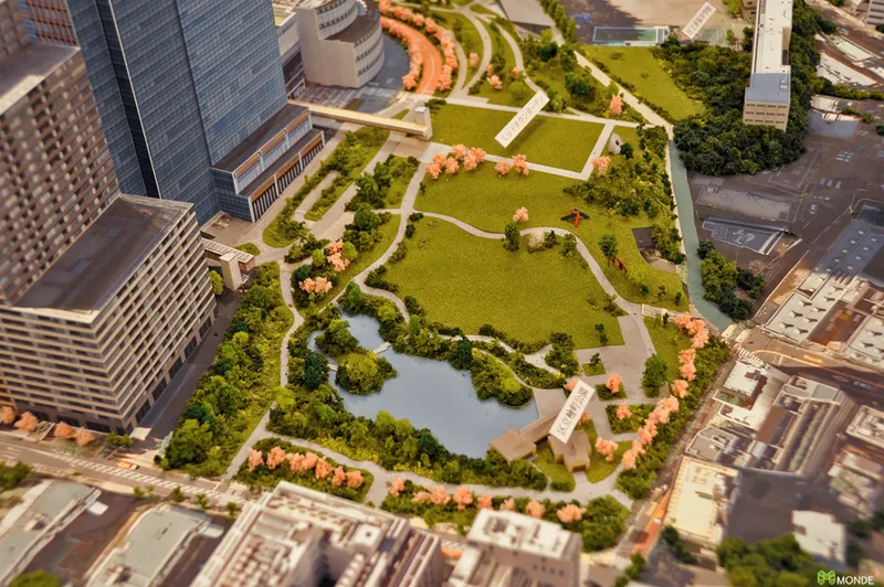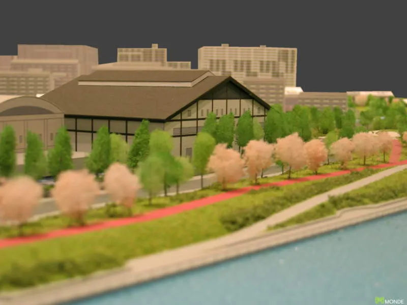隅田川や公園の賑わいを再現。暮らしの豊かさを伝える販売促進用ジオラマ。