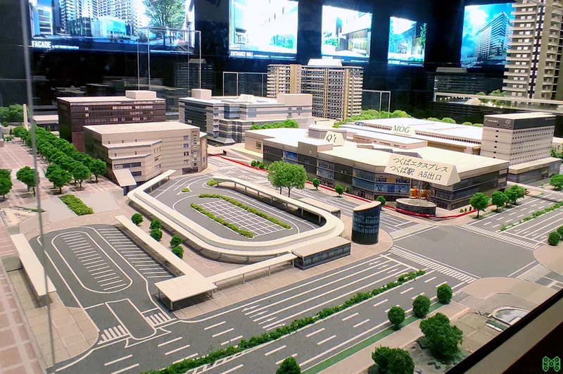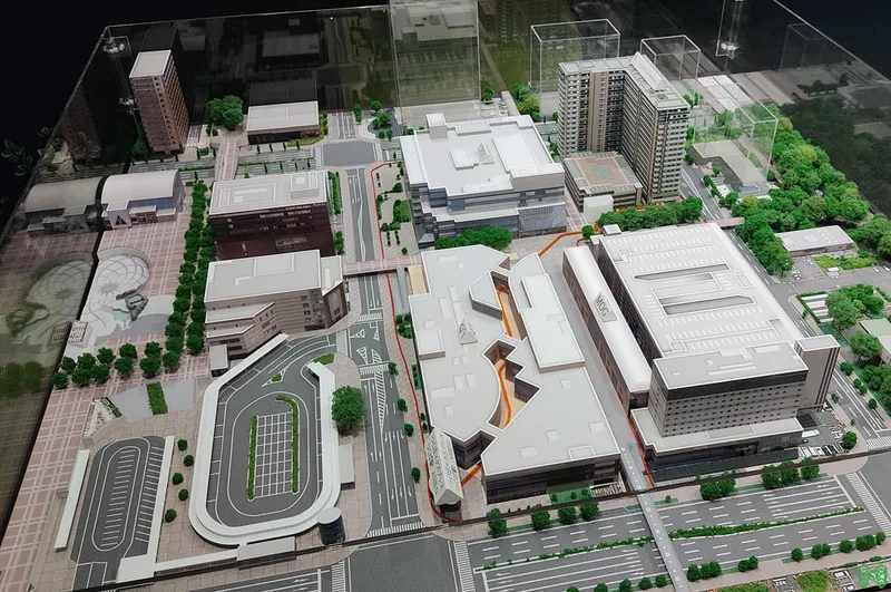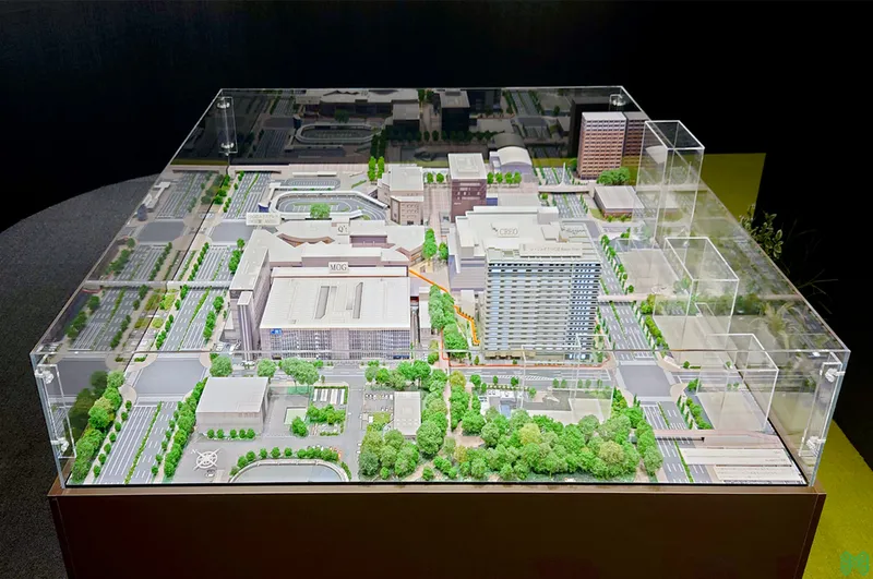 柏駅周辺の再開発計画用模型。1/500スケールで街区を詳細に再現。