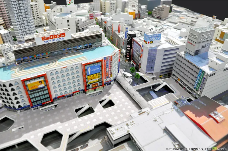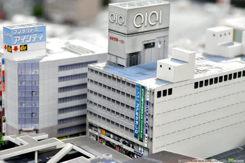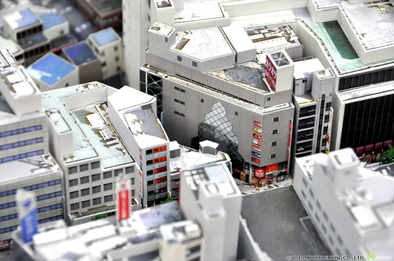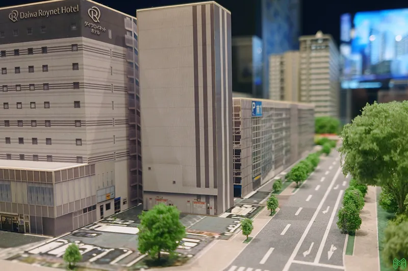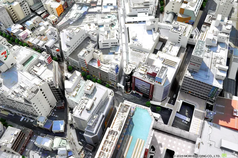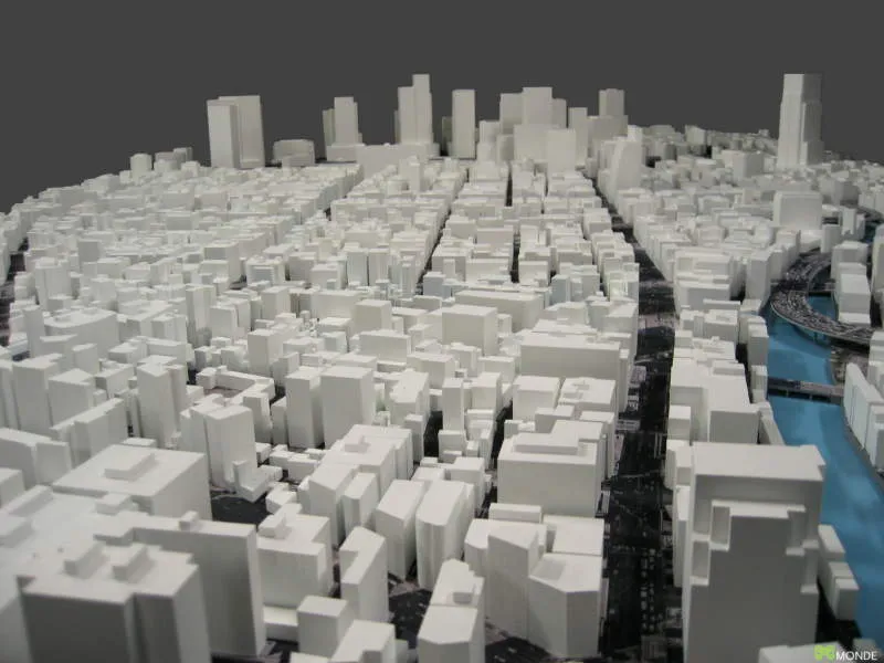 撮影用と風洞実験用を兼ねた精巧な都市模型。数百棟のビル群を表現しています。