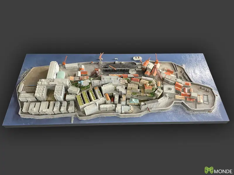 全島民退去時の姿を再現した高精細モデル(縮尺1/300・W1700×D650㎜ 1974)