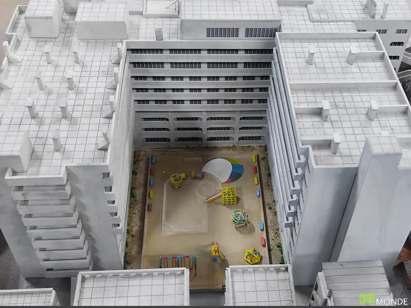 ビル風や風圧の影響を検証するための実験用模型。薬剤耐性のある素材を使用。