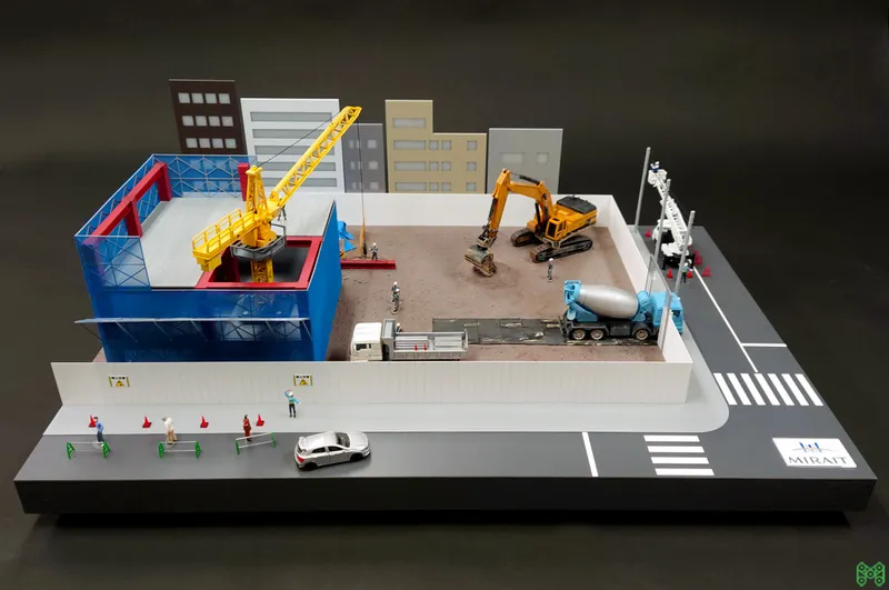 1/500や1/1000の都市スケールから、映像・CM撮影用の精密プロップ、「ウェザリング(汚し塗装)」や「LED照明・電動ギミック」を駆使した演出まで、勝てるプレゼン・展示を実現する製作事例をご覧ください。