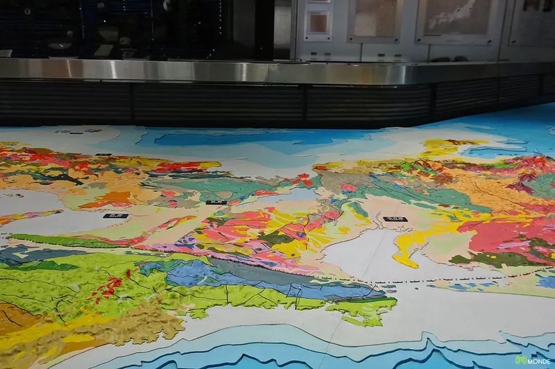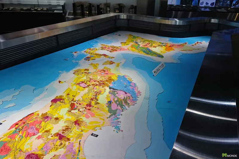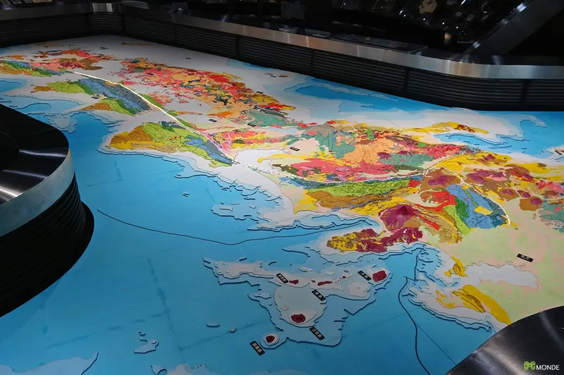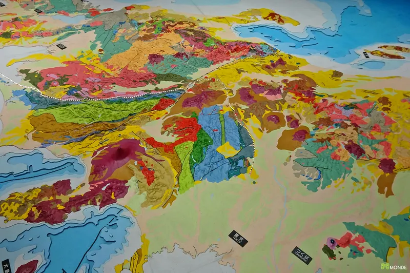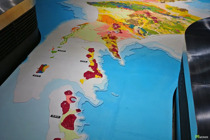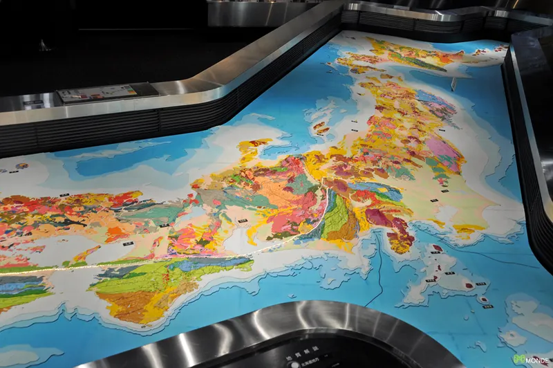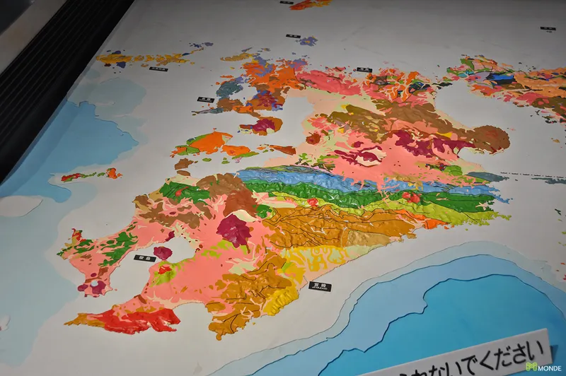 地質標本館に展示された全長約9mの巨大模型。海底地形まで精密に立体化しました。