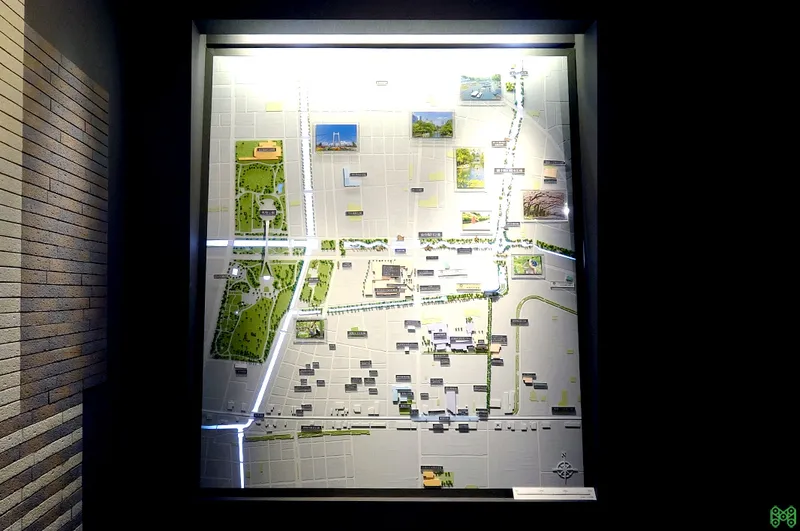省スペースと演出効果を両立。立体案内図として機能する壁面展示モデル
