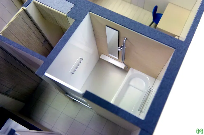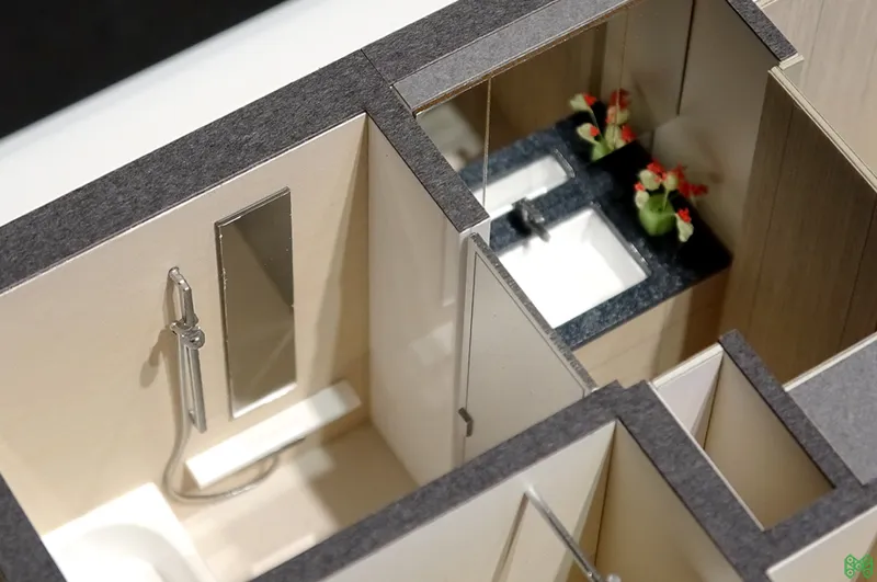 フローリングの質感、造作家具のディテール、照明の配置に至るまで精密に作り込み、図面やパースでは伝わりにくい「空間の広がり」や「生活動線」を直感的に伝えることができます。1/20~1/50スケールが一般的ですが、詳細検討用の1/10スケール等も対応可能です。